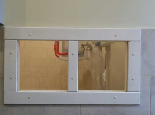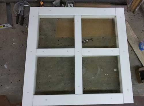 Вікно складається з рентгенозахисного скла закордонного виробника та віконної рами українського виробника, може бути різних розмірів та різної товщини. Віконна рама виготовляється з гнутого профілю з урахуванням параметрів рентгенозахисного скла, виготовляється рама по заявленому будівельному або світловому отвору, вікно може бути лише глухим. Як захисний матеріал у рентгенозахисних рамах використовують свинцеві листи. Зовнішні розміри рами за технологією робляться на 30мм менше за шириною та на 20мм за висотою в порівнянні з розмірами будівельного отвору. Оздоблення рами пофарбовано, в комплекті лиштви, облицьовані МДФ панелями. Розміри скла завжди індивідуальні, термін постачання від 7 до 24 днів. Найбільш популярні розміри скла: 355х355; 700х800; 600х800; 800х1000; 1000х1200. Найбільшим попитом користується свинцевий еквівалент захисту: Pb = 1,0 мм/1,5 мм/2,0 мм/2,5 мм.
